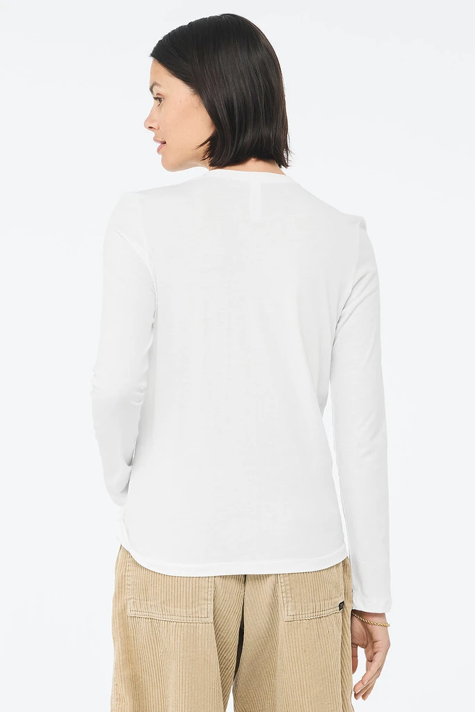 Dieses klassische Damen-Langarm-T-Shirt hat eine halb entspannte Passform, einen klassischen Rundhalsausschnitt, lange Ärmel und hochwertige gekämmte und ringgesponnene Airlume-Jersey-Baumwolle, die als leere Leinwand für den Druck dient.