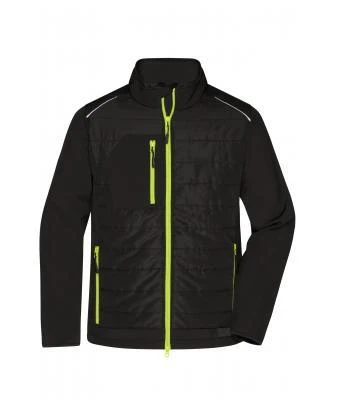 Pflegeleichtes 2-Lagen Softshellmaterial kombiniert mit gesteppen Einsätzen im Vorder- und Rückenteil