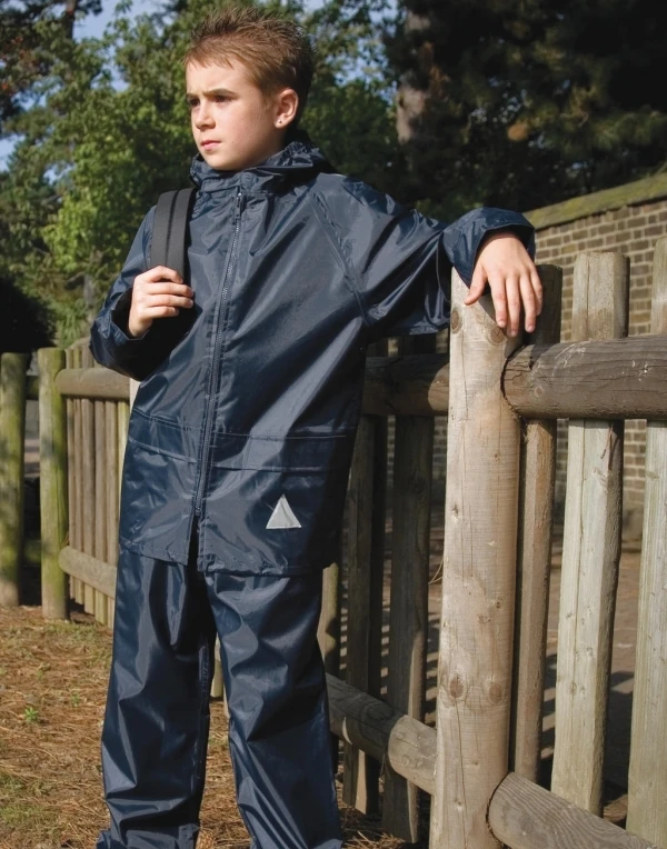100% Polyester (190T) mit PU-Beschichtung • Jackenfutter: Polyester, Netz im Schulterbereich • vollkommen wasserdicht (versiegelte Nähte) • Kapuze • Verstellbare Ärmelbündchen • Hose mit Gummizug • Beinabschluss verstellbar mit Druckverschluss • Verpackt im Tragebeutel mit Zip.