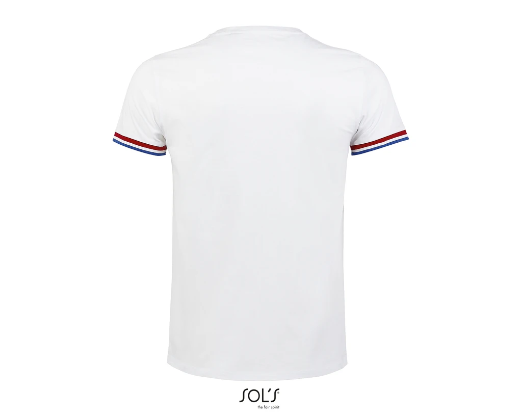 QUALITÄT: 155 JERSEY - 100% halbgekämmte Baumwolle ringspun; Nackenband, Elasthan Rippkragen, kurze Ärmel, 1x1 gerippte Manschetten mit Kontraststreifen, Seitennähte; Zerfitikat: STANDARD 100 by OEKO-TEX®