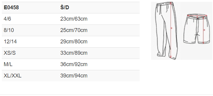 | Velikost extra | XS/S, M/L, XL/2XL, 4/6, 8/10, 12/14 |