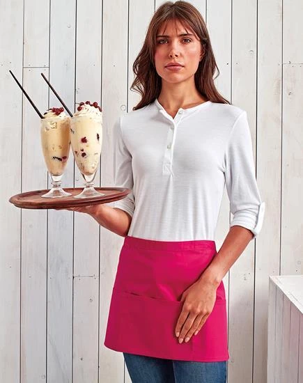 Diese Schürze mit kurzer Taille ist ein beliebter Schürzenstil, der in vielen Bars und Restaurants zu finden ist. Sie verfügt über drei offene Taschen und ist in 28 Farben aus der Premier „Colors Collection“ erhältlich. Die Taschen eignen sich ideal zum Tragen von Zahlungsterminals und Tablet-Geräten.