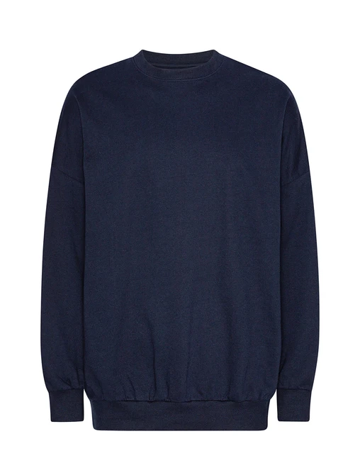 Das aus ringgekämmter Baumwolle gefertigte Sweatshirt bietet einen modernen, übergroßen Schnitt mit überschnittenen Schultern für einen bequemen und stilvollen Look. Der gestrickte Halsausschnitt, die Bündchen und die Taille sorgen für Strapazierfähigkeit, während der Ausschnitt für einen klassischen Touch sorgt.