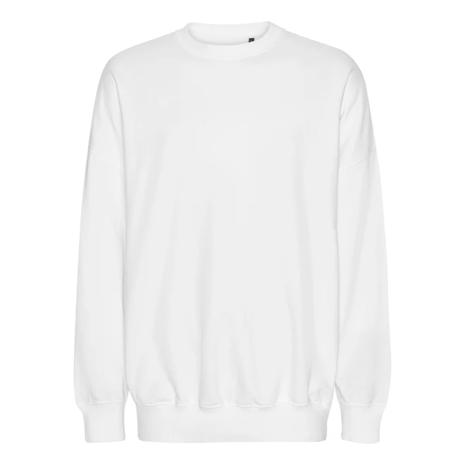 Das aus ringgekämmter Baumwolle gefertigte Sweatshirt bietet einen modernen, übergroßen Schnitt mit überschnittenen Schultern für einen bequemen und stilvollen Look. Der gestrickte Halsausschnitt, die Bündchen und die Taille sorgen für Strapazierfähigkeit, während der Ausschnitt für einen klassischen Touch sorgt.