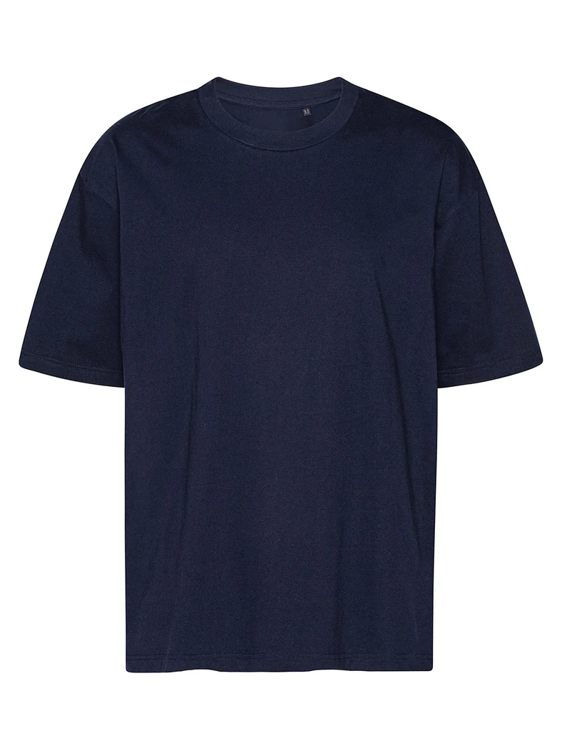 Es besteht aus ringgekämmter Baumwolle und hat eine übergroße Passform mit überschnittenen Schultern für einen bequemen und stilvollen Look. Der gerippte Rundhalsausschnitt und das Nackenband aus Elasthan sorgen für Strapazierfähigkeit, während der Rundhalsausschnitt für einen modernen Touch sorgt.