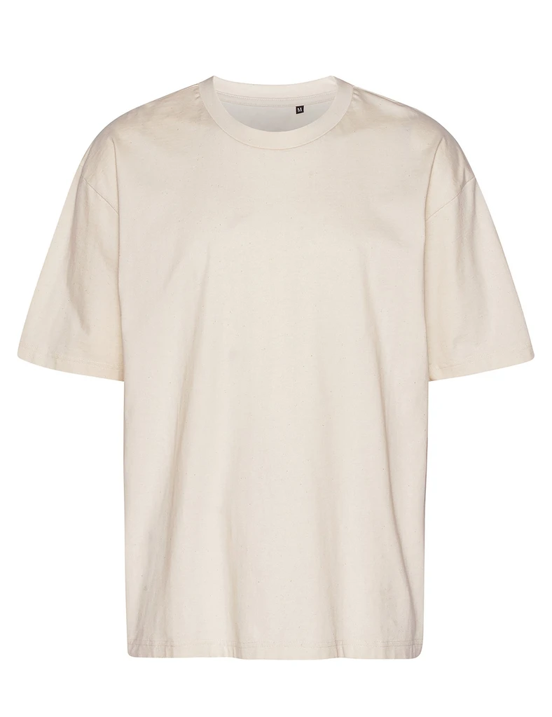 Es besteht aus ringgekämmter Baumwolle und hat eine übergroße Passform mit überschnittenen Schultern für einen bequemen und stilvollen Look. Der gerippte Rundhalsausschnitt und das Nackenband aus Elasthan sorgen für Strapazierfähigkeit, während der Rundhalsausschnitt für einen modernen Touch sorgt.