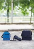 Kugelhalter aus Plane, vorgesehen für 3 Boule-Kugeln, Schnallenverschluß, verstellbarer Schulterriemen.