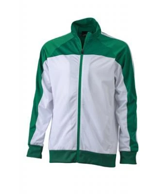 Jacke: Durchgehender Reißverschluss und Stehkragen, Elastische Bündchen an Arm und Saum, 2 seitliche Taschen mit Reißverschluss