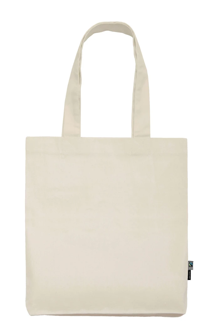 Material: 100% Bio-Fairtrade-Baumwolle, Köperbindung; Gewicht: 210 g/m²; Schwere Köperbindung. Lange Griffe, unterer Zwickel. An Spannungspunkten verstärkt. Größen: 38 x 42 cm/Griffe 66cm; Neutral® & Fairtrade Flaglabels an der Seite; Zertifikate: OEKO-TEX® STANDARD 100, 100% CERTIFIED ORGANIC COTTON, FAIR WEAR, EU ECOLABEL, SA8000, NEUTRAL® RESPONSIBILITY