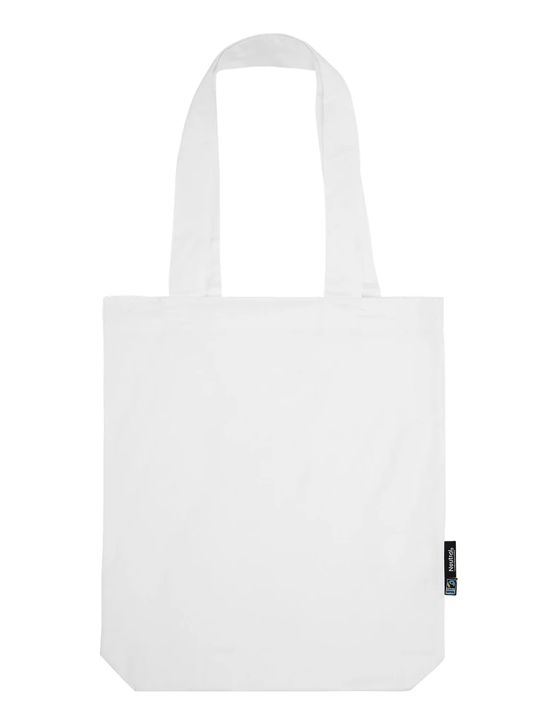 Material: 100% Bio-Fairtrade-Baumwolle, Köperbindung; Gewicht: 210 g/m²; Schwere Köperbindung. Lange Griffe, unterer Zwickel. An Spannungspunkten verstärkt. Größen: 38 x 42 cm/Griffe 66cm; Neutral® & Fairtrade Flaglabels an der Seite; Zertifikate: OEKO-TEX® STANDARD 100, 100% CERTIFIED ORGANIC COTTON, FAIR WEAR, EU ECOLABEL, SA8000, NEUTRAL® RESPONSIBILITY