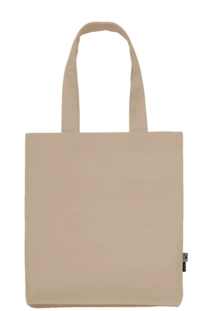 Material: 100% Bio-Fairtrade-Baumwolle, Köperbindung; Gewicht: 210 g/m²; Schwere Köperbindung. Lange Griffe, unterer Zwickel. An Spannungspunkten verstärkt. Größen: 38 x 42 cm/Griffe 66cm; Neutral® & Fairtrade Flaglabels an der Seite; Zertifikate: OEKO-TEX® STANDARD 100, 100% CERTIFIED ORGANIC COTTON, FAIR WEAR, EU ECOLABEL, SA8000, NEUTRAL® RESPONSIBILITY