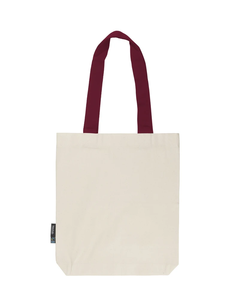 Material: 100% Bio-Fairtrade-Baumwolle, köperbindung; Gewicht: 210 g/m²; Schwere Köperbindung. Lange Kontrastgriffe. An Spannungspunkten verstärkt. Unterer Zwickel; Größen: 38 x 42 cm/Griffe 66cm; Neutral® & Fairtrade Flaglabels an der Seite; Zertifikate: OEKO-TEX® STANDARD 100, 100% CERTIFIED ORGANIC COTTON, FAIR WEAR, EU ECOLABEL, SA8000, NEUTRAL® RESPONSIBILITY