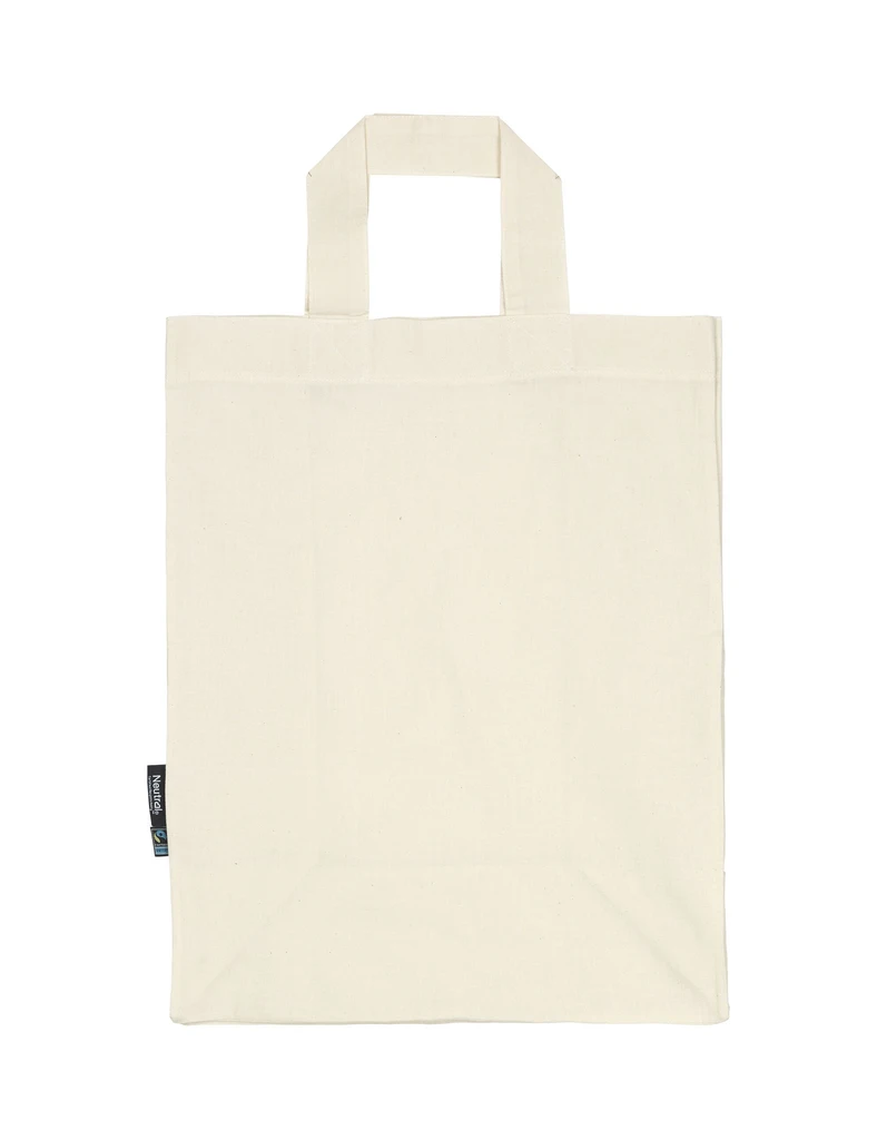 Material: 100% Bio-Fairtrade-Baumwolle, köperbindung; Gewicht: 210 g/m²; Schwere Köperbindung. Kurze Griffe (36 cm), Größen: 35 x 44 cm. An Spannungspunkten verstärkt. Boden- und Seitenzwickel. Neutral® & Fairtrade Flaglabels an der Seite; Zertifikate: OEKO-TEX® STANDARD 100, 100% CERTIFIED ORGANIC COTTON, FAIR WEAR, EU ECOLABEL, SA8000, NEUTRAL® RESPONSIBILITY