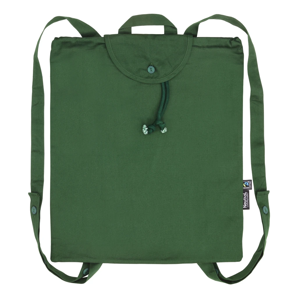 Rucksack aus Twillgewebe mit Baumwollknöpfen an den Trägern. Mit Neutral®- und Fairtrade-Flaggenetiketten an der Seite. Erhältlich in sechs Farben.