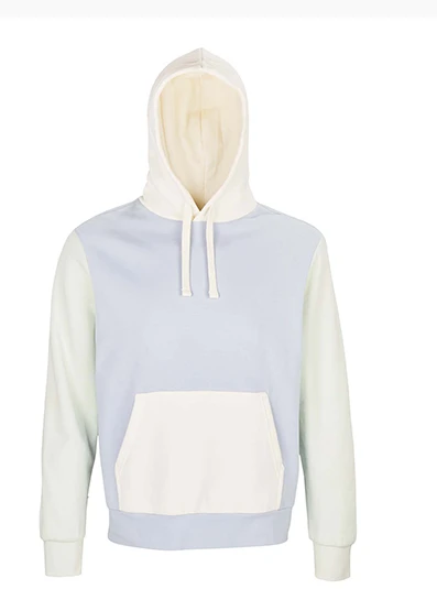 Material: Gebürstetes Fleece 280 - 80 % gekämmte Bio-Baumwolle - In Umwandlung 20% recycelter Polyester; Unisex, gekämmte Bio-Baumwolle / recyceltes Polyester, dreifarbig, Color-Blocking, Kängurutasche, gefütterte Kapuze mit Kordelzug, gerippter Kragen, Bündchen und Saum, Halbmond im Kragen, Nackenband, gebürstetes Fleece, moderner und bequemer Schnitt; Zertifikate: GOTS - Global organic textile standard, STANDARD 100 by OEKO-TEX®