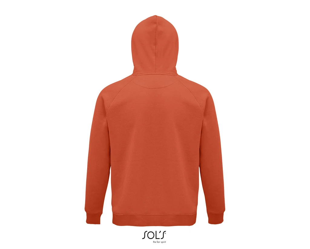 Material: FLEECE 280 - 80% biologisch angebaute Baumwolle - 20% recyceltes Polyester, 3 Garne, Gebürstetes Futter, Außen: 100% Bio-Baumwolle; Schneiden und nähen, Raglanärmel, 2x2 gerippte Manschetten und Saum, Halbmond im Kragen, Halsband, Kordelzug mit Metallösen und Stopfen, Jersey gefütterte Kapuze; Zertifikate: STANDARD 100 by OEKO-TEX®; Organic Blended Content Standard