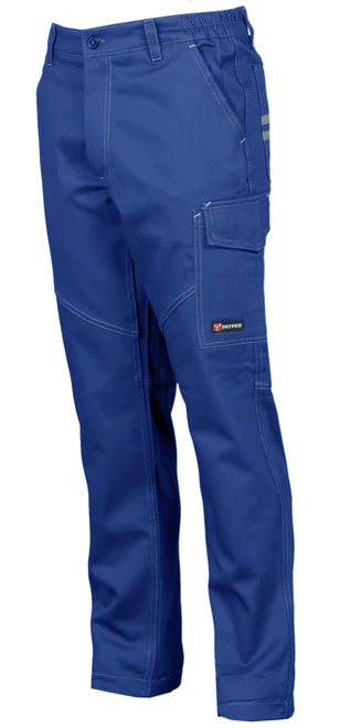 Ganzjährig tragbare Unisex-Hose mit seitlich dehnbarem Bund und Gürtelschlaufen, Hosenschlitz mit Reißverschluss und Knopf aus Kunststoff, zwei klassisch geschnittenen Vordertaschen, einer Seitentasche mit LOCK SYSTEM, einer Zollstocktasche, einer offenen Gesäßtasche und einer mit Patte und