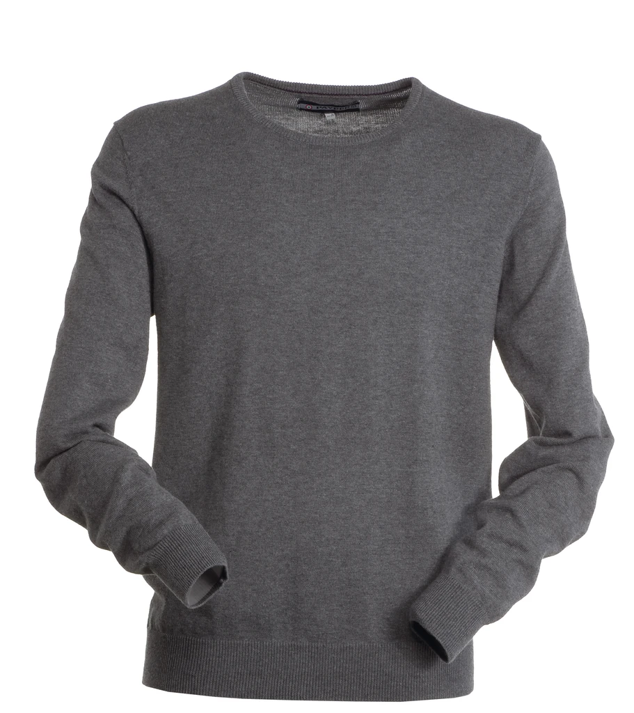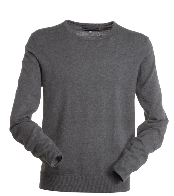Unisex crew-neck jumper with finely rib cuffs and bottom edges, in stocking stitch and fully fashioned without seams