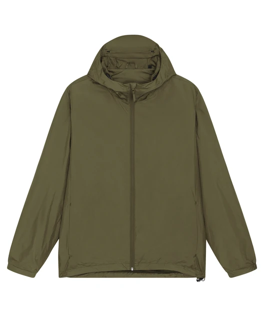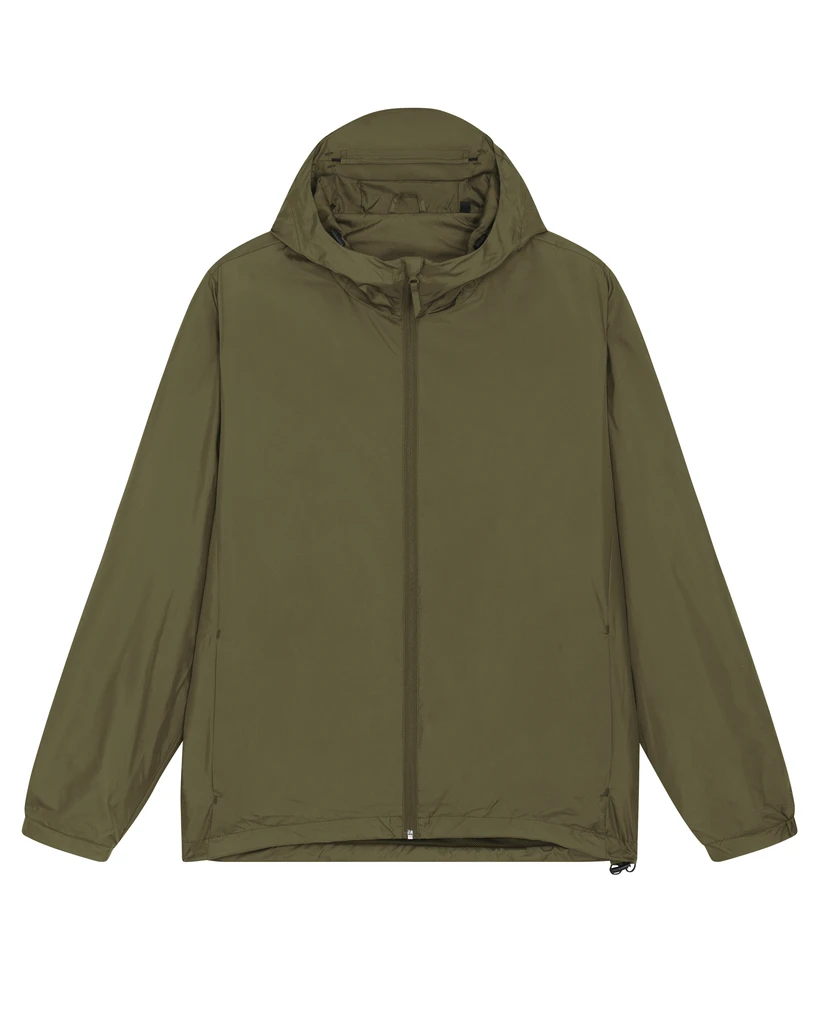 Material: 100 % recyceltes Polyester, fluorfreie DWR; Gewicht: 75g/m²; Mittlere Passform, angesetzte Ärmel, längere Rückenlänge mit abgerundetem Saum zum Schutz. unterer Saum mit verstellbarem Kunststoffstopper und elastischer Kordel, versiegelter Kapuzenschirm und versiegelte Leistentaschen, doppellagige Kapuze mit verstellbarem Kunststoffstopper und elastischer Kordel innen, umgekehrter Nylon-Reißverschluss vorne mittig mit Kinnschutz, Leistentaschen mit Reißverschluss und extra Ripsbandschieber, seitlich Einsätze für eine bessere Form, halbelastische Ärmelbündchen, Halbmond aus dem gleichen Stoff am Nacken, innere Reißverschlussöffnung am unteren Saum und auf der linken Brust des Trägers für eine einfache Dekoration; Zertifikate: Global Recycled Standard (GRS), Fair Wair, STANDARD 100 by OEKO-TEX®, Peta - Approved VEGAN