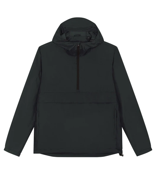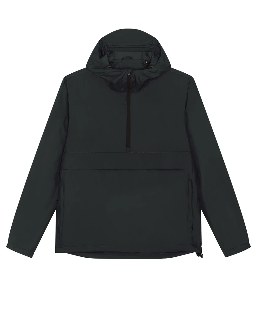 Material: 100% recyceltes Polyester, fluorfreie DWR; Gewicht: 75g/m²; Mittlere Passform, eingesetzte Ärmel, längere Rückenlänge mit abgerundetem Saum zum Schutz, unterer Saum mit verstellbarem Kunststoffstopper und elastischer Kordel, versiegelter Kapuzenschirm, doppellagige Kapuze mit verstellbarem Kunststoffstopper und elastischer Kordel innen, umgekehrter Nylon-Reißverschluss in der Mitte vorne mit Kinnschutz, Leistentaschen mit Reißverschluss und zusätzlichem Grosgrain-Puller, nicht funktionelle Klappe vorne und hinten, halbelastische Ärmelbündchen, Halbmond aus gleichem Stoff am Nacken, Innenreißverschluss am unteren Saum und Innenschlaufe mit Druckknopf am Armloch für einfachen Zugriff für Brustschmuck; Zertifikate: Global Recycled Standard (GRS), Fair Wair, STANDARD 100 by OEKO-TEX®, Peta - Approved VEGAN