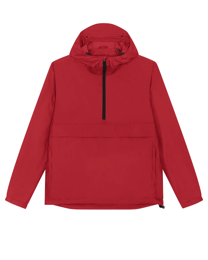 Material: 100% recyceltes Polyester, fluorfreie DWR; Gewicht: 75g/m²; Mittlere Passform, eingesetzte Ärmel, längere Rückenlänge mit abgerundetem Saum zum Schutz, unterer Saum mit verstellbarem Kunststoffstopper und elastischer Kordel, versiegelter Kapuzenschirm, doppellagige Kapuze mit verstellbarem Kunststoffstopper und elastischer Kordel innen, umgekehrter Nylon-Reißverschluss in der Mitte vorne mit Kinnschutz, Leistentaschen mit Reißverschluss und zusätzlichem Grosgrain-Puller, nicht funktionelle Klappe vorne und hinten, halbelastische Ärmelbündchen, Halbmond aus gleichem Stoff am Nacken, Innenreißverschluss am unteren Saum und Innenschlaufe mit Druckknopf am Armloch für einfachen Zugriff für Brustschmuck; Zertifikate: Global Recycled Standard (GRS), Fair Wair, STANDARD 100 by OEKO-TEX®, Peta - Approved VEGAN