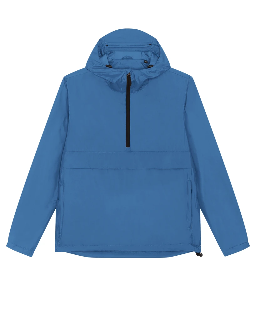 Material: 100% recyceltes Polyester, fluorfreie DWR; Gewicht: 75g/m²; Mittlere Passform, eingesetzte Ärmel, längere Rückenlänge mit abgerundetem Saum zum Schutz, unterer Saum mit verstellbarem Kunststoffstopper und elastischer Kordel, versiegelter Kapuzenschirm, doppellagige Kapuze mit verstellbarem Kunststoffstopper und elastischer Kordel innen, umgekehrter Nylon-Reißverschluss in der Mitte vorne mit Kinnschutz, Leistentaschen mit Reißverschluss und zusätzlichem Grosgrain-Puller, nicht funktionelle Klappe vorne und hinten, halbelastische Ärmelbündchen, Halbmond aus gleichem Stoff am Nacken, Innenreißverschluss am unteren Saum und Innenschlaufe mit Druckknopf am Armloch für einfachen Zugriff für Brustschmuck; Zertifikate: Global Recycled Standard (GRS), Fair Wair, STANDARD 100 by OEKO-TEX®, Peta - Approved VEGAN