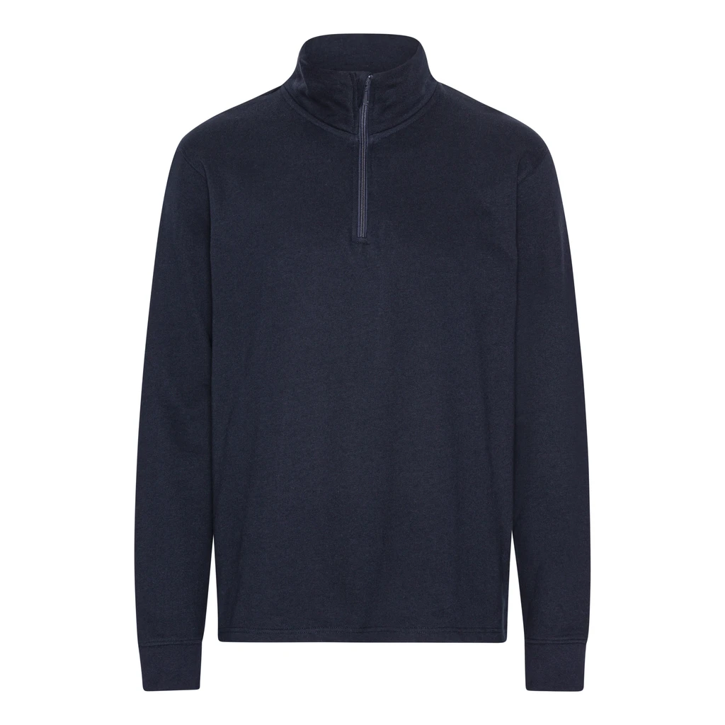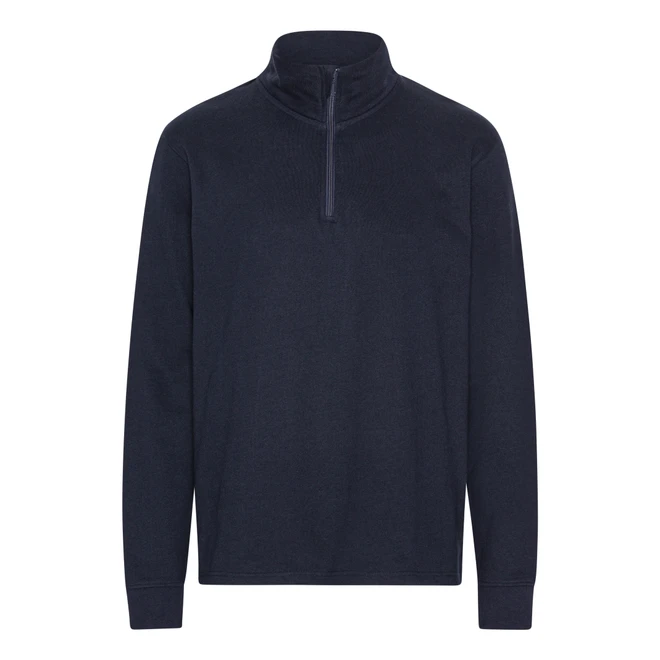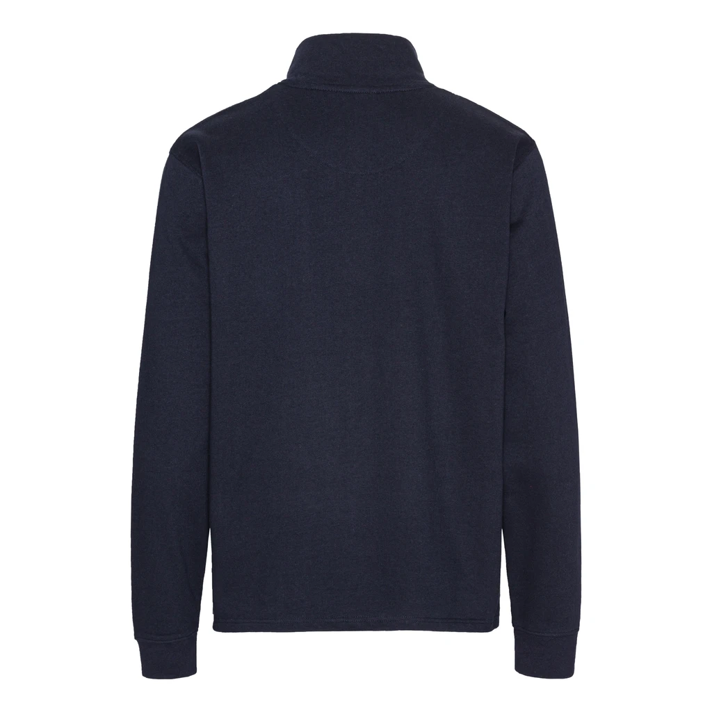 Schweres Sweatshirt mit Viertelreißverschluss, doppelt gefüttertem hohem Halsausschnitt und YKK-Reißverschluss an der Vorderseite. Mit Nackenband innen, Ärmelbündchen und Bund aus Rippstrick. Hergestellt aus ringgesponnener, gekämmter Baumwolle (300 g/m²) mit weicher, gebürsteter Innenseite.