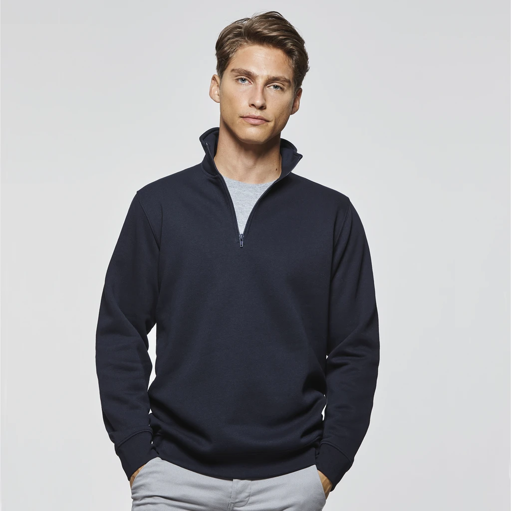 Sweatshirt mit Half Zip im gleichen Ton und hohem Kragen. Innenkragen im gleichen Ton und Nackenband. Rippstrick am Saum und Ärmelbündchen.