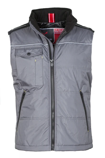 Unisex-Weste mit Reißverschluss und tailliertem Rücken, zwei geräumigen Außentaschen mit Reißverschluss, großer Brusttasche für das Smartphone, Ring zum Anhängen eines Ausweises, Reflex-Paspelierung auf der Brust und auf dem Rücken; Innenseite: Steppund High-Density-Futter, Krageninnenseite aus Fleece, eine Tasche