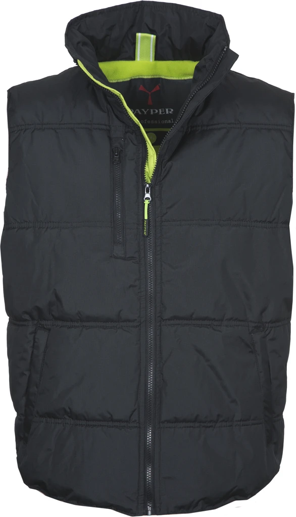 Unisex-Weste mit 8 mm Reißverschluss aus Kunststoff mit Metallschieber, zwei Seitentaschen mit Reißverschluss, einer Brusttasche; Innenseite: wattiert, Mikrofleece in Kontrastfarbe