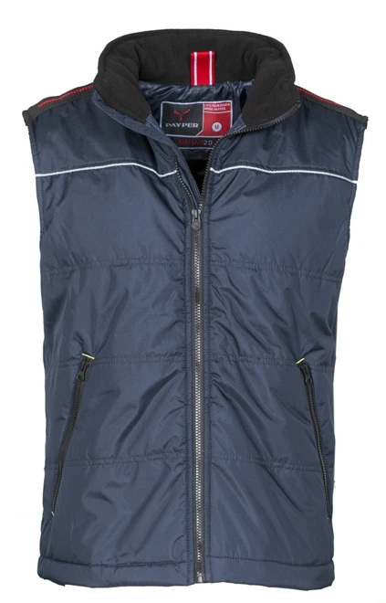 Unisex-Weste mit Reißverschluss und tailliertem Rücken, zwei geräumigen Außentaschen mit Reißverschluss, Reflex-Paspelierung auf der Brust und auf dem Rücken; Innenseite: Stepp- und High-Density-Futter, Krageninnenseite aus Fleece, eine Tasche