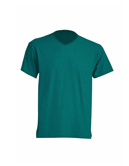 Nackentape Schulter zu Schulter. Feiner V-Kragen mit Lycra. Grey Melange: 85% Baumwolle / 15% viskose. Heather: 65% polyester / 35% Baumwolle. Denim heather: 60% Baumwolle / 40% polyester