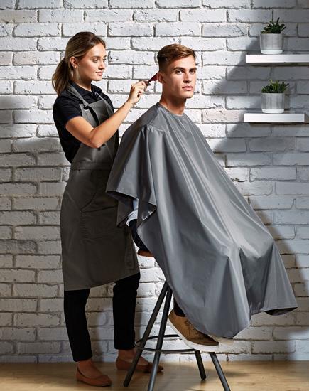 Unser wasserdichter Salonkittel bietet Ganzkörperschutz gegen verschüttete Flüssigkeiten, Lotionen, Tränke und Haarschnitte. Der Kittel liegt bequem um den Hals und wird mit einem selbstklebenden Verschluss auf der Rückseite befestigt. Außerdem verfügt es über einen praktischen Stoffhaken zum Aufhängen.