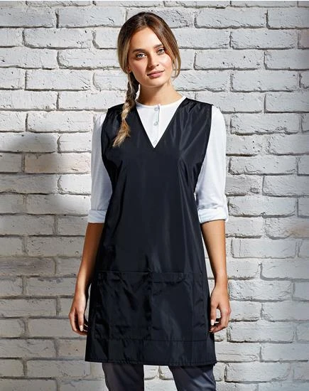 Dieser Stil ist ein attraktiver Stil und bietet gleichzeitig absolute Praktikabilität für den Träger. Er ist eine wasserdichte und bleichmittelbeständige Version des Kundenlieblings, der PR177 „Tulip“ Wrap Around Tunic. Ein Über-den-Kopf-Stil, der von hinten nach vorne an der Unterseite befestigt wird, sich dann wieder umwickelt und hinten sauber gebunden wird.