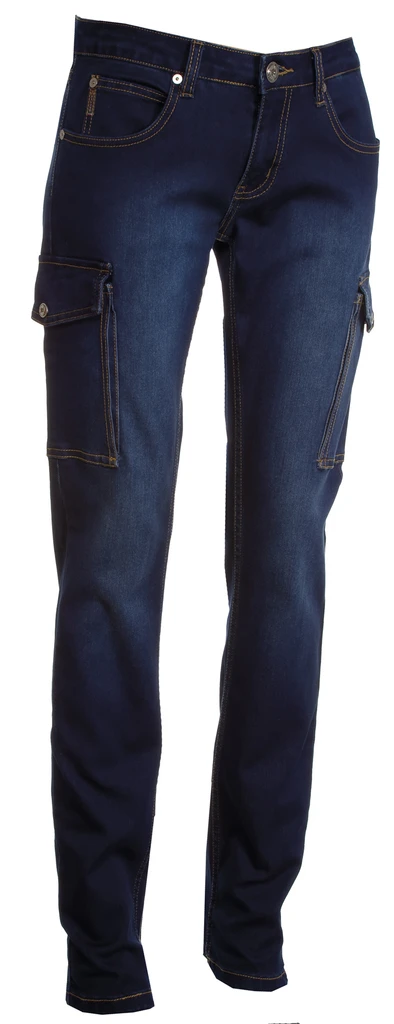 Ganzjährig tragbare Damenhose im Jeans-Design mit fünf Taschen, zwei Seitentaschen mit