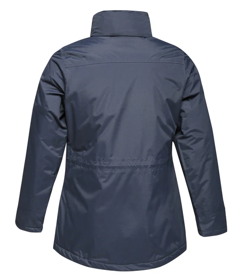 Wasserdichtes Hydrafort 5000 Peached-Polyester-Gewebe, winddichtes Gewebe, Thermo-Guard-Isolierung, getapte Nähte, 160 g/m² Körperisolation Watte, verdeckte Kapuze mit Verstellmöglichkeiten, verstellbare Ärmelbündchen, 2 untere Taschen mit Reißverschluss-Handwärmer und 2 untere Cargo-Taschen, Handytasche, Innen Sicherheitstasche und RV-Brusttasche, verdeckter RV-Eingang im Futter für Stickzugang, taillierter Schnitt
