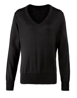 Ein Damenpullover mit V-Ausschnitt und hohem Baumwollanteil aus Feinstrick. Dank des V-Ausschnitts kann dieser Pullover über einer Bluse mit offenem Kragen oder formeller mit einem Schal am Ausschnitt getragen werden. Die gerippten Strickbündchen und der Saum sorgen für ein wirklich modernes Stück.