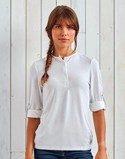 Ein schlichter, aber vielseitiger Stil, der langärmelig oder nach hinten gerollt getragen und am Oberarm befestigt werden kann. Weich im Griff und mit einem Stretchanteil im Stoff ist dies ein trendiges Arbeitskleidungsstück, das als lässige Alternative zu einem Hemd fungiert.