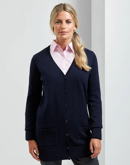 Mit dieser langen Strickjacke können sich Damen stilvoll kleiden. Dieser Damen-Cardigan mit hohem Baumwollanteil spiegelt die neuesten High-Street-Trends für kuschelige Strickwaren wider und kann locker über einer Bluse getragen oder vollständig zugeknöpft werden. Der Rippstrick an V-Ausschnitt, Bündchen und Saum sorgt für eine bequeme Passform und hervorragende Formbeständigkeit.