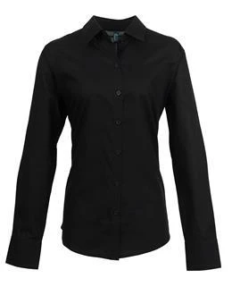 Die langärmlige Signature-Oxford-Bluse von Premier besteht aus einem baumwollreichen Oxford-Gewebe. Diese Bluse bietet der Trägerin einen halb taillierten Stil mit Abnähern an Brust und Rücken, einem abgerundeten unteren Saum und einem weichen Kragendetail am Ausschnitt.