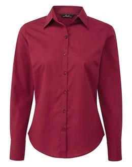 Eine stilvolle Damenbluse mit langen Ärmeln, die in 27 Farben erhältlich ist. Diese Bluse bietet der Trägerin einen halb taillierten, femininen Stil mit weichem Kragen, Brust, Abnähern auf der Rückseite und einem abgerundeten unteren Saum.