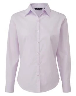 Eine stilvolle Damenbluse mit langen Ärmeln, die in 27 Farben erhältlich ist. Diese Bluse bietet der Trägerin einen halb taillierten, femininen Stil mit weichem Kragen, Brust, Abnähern auf der Rückseite und einem abgerundeten unteren Saum.