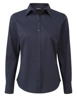 Eine stilvolle Damenbluse mit langen Ärmeln, die in 27 Farben erhältlich ist. Diese Bluse bietet der Trägerin einen halb taillierten, femininen Stil mit weichem Kragen, Brust, Abnähern auf der Rückseite und einem abgerundeten unteren Saum.