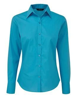 Eine stilvolle Damenbluse mit langen Ärmeln, die in 27 Farben erhältlich ist. Diese Bluse bietet der Trägerin einen halb taillierten, femininen Stil mit weichem Kragen, Brust, Abnähern auf der Rückseite und einem abgerundeten unteren Saum.