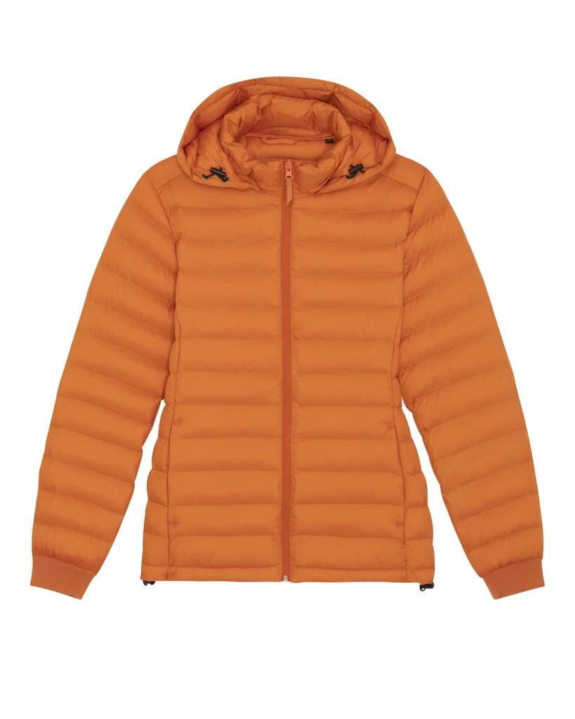 Material: 100 % recyceltes Polyester, fluorfreie DWR; Gewicht: 75g/m²; Taillierter Schnitt, angesetzte Ärmel, hoher Kragen mit abnehmbarer Kapuze und verdeckten Druckknöpfen aus mattem Metall, Kapuzenöffnung und unterer Saum mit verstellbarem Kunststoffstopper und elastischer Kordel, umgekehrter Nylonreißverschluss vorne in der Mitte, Leistentaschen mit Reißverschluss und zusätzlichem Ripsbandschieber, vollständig gesteppt, Seiteneinsätze für bessere Form, 1x1-Ripp am Ärmelsaum, innen eingefasste Nähte; Zertifikate: Global Recycled Standard (GRS), Fair Wair, STANDARD 100 by OEKO-TEX®, Peta - Approved VEGAN