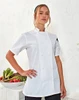 Diese kurzärmlige Jacke ist für Frauen konzipiert und bietet eine bessere Passform im Oberarm-, Taillen- und Brustbereich. Ein Wickelmodell mit zehn Knöpfen vorne und einer praktischen Stifttasche am linken Oberarm.