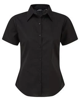 Eine Damen-Kurzarmbluse mit halb tailliertem Schnitt, erhältlich in 27 Farben. Die Bluse verfügt über einen weichen Kragenstil mit Abnähern an Brust und Rücken sowie einen abgerundeten Saum für ein wirklich attraktives Arbeitskleidungsstück.
