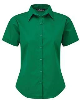 Eine Damen-Kurzarmbluse mit halb tailliertem Schnitt, erhältlich in 27 Farben. Die Bluse verfügt über einen weichen Kragenstil mit Abnähern an Brust und Rücken sowie einen abgerundeten Saum für ein wirklich attraktives Arbeitskleidungsstück.