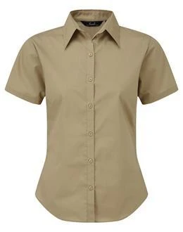 Eine Damen-Kurzarmbluse mit halb tailliertem Schnitt, erhältlich in 27 Farben. Die Bluse verfügt über einen weichen Kragenstil mit Abnähern an Brust und Rücken sowie einen abgerundeten Saum für ein wirklich attraktives Arbeitskleidungsstück.