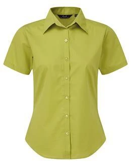 Eine Damen-Kurzarmbluse mit halb tailliertem Schnitt, erhältlich in 27 Farben. Die Bluse verfügt über einen weichen Kragenstil mit Abnähern an Brust und Rücken sowie einen abgerundeten Saum für ein wirklich attraktives Arbeitskleidungsstück.